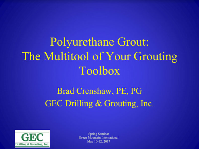 GEC personnel are routinely invited to speak at short courses, seminars, conferences, etc. on the topic of grouting. We believe the sharing of knowledge benefits both us and the construction industry as a whole. Information on upcoming events at which GEC will be presenting may be found on the News page. If you are not able to attend an event, you can find the presentation from the most recent presentation below: